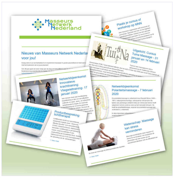 De nieuwsbrief van Masseurs Netwerk Nederland is ons belangrijkste communicatiemiddel. We sturen je regelmatig updates over evenementen, interessante artikelen rond het brede vakgebied massage, informatie over opleiding, aanbiedingen, nieuwe producten voor masseurs en meer. We bestoken je niet met reclame en je persoonsgegevens slaan we veilig op en zullen we nooit doorgeven aan derden.