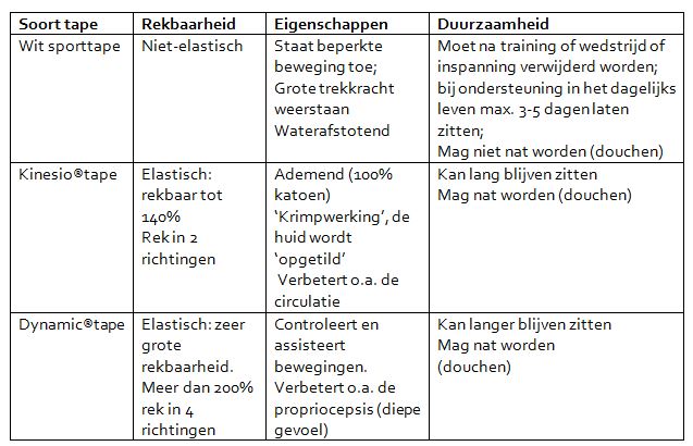 - Sporttape staat beperkte beweging toe, geeft druk waardoor evt. zwelling tegengegaan wordt en voorkomt verergering van een blessure en vermindering van het spiervolume (= atrofie). Tevens kan de sporter sportactiviteiten sneller weer gaan hervatten;